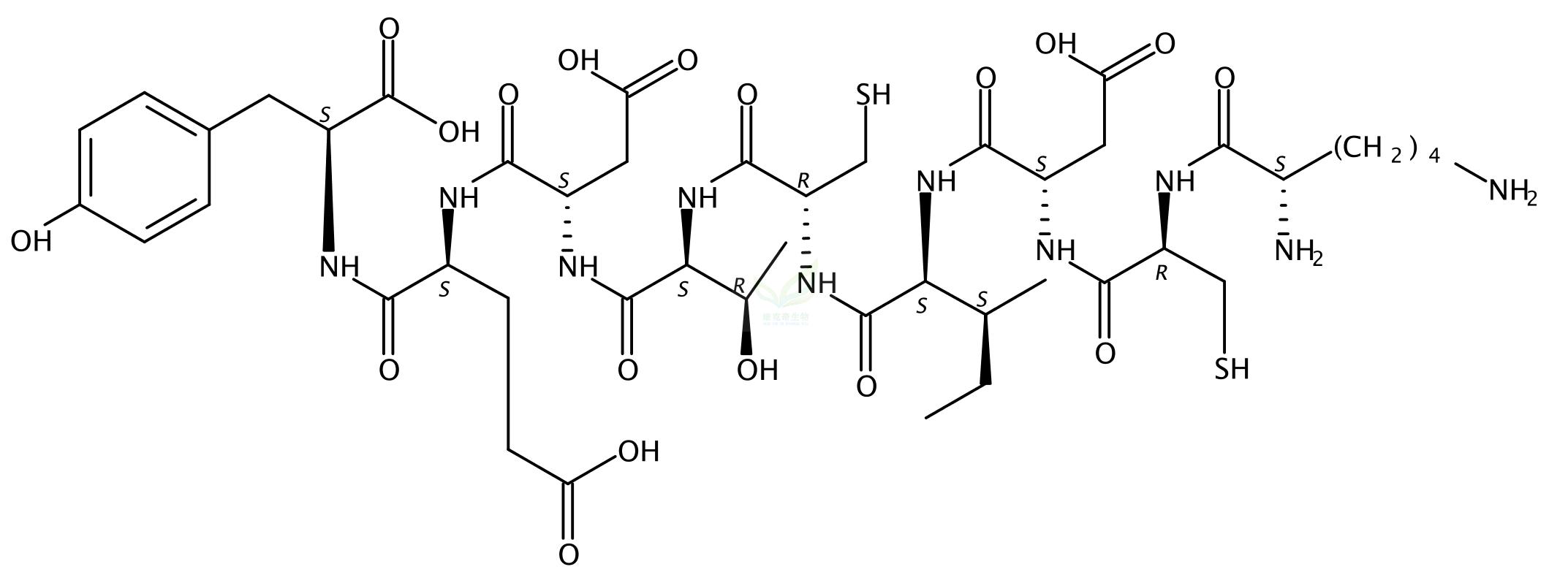 英文别名:L-Lysyl-L-cysteinyl-L-α-aspartyl-L-isoleucyl-L-cysteinyl-L-threonyl-L-α-aspartyl-L-α-glutamyl-L-tyrosine;104: PN: WO2009051555 SEQID: 109 claimed protein;111: PN: WO2008124646 SEQID: 111 unclaimed protein;1203: PN: WO2010037395 SEQID: 140415 claimed protein;1294: PN: WO2006091734 PAGE: 71 claimed sequence;176: PN: WO2014039675 SEQID: 181 unclaimed protein;1884: PN: WO2014036562 SEQID: 2171 unclaimed protein;213: PN: WO2011140284 SEQID: 252 claimed protein;243-251 Human tyrosinase peptide;245: PN: WO2009109428 SEQID: 249 claimed protein;24: PN: WO0236146 SEQID: 24 claimed sequence;26: PN: WO2012044999 SEQID: 26 unclaimed sequence;312: PN: WO2017152042 SEQID: 362 claimed protein;399: PN: WO2008120202 SEQID: 413 unclaimed sequence;401: PN: WO2020172472 SEQID: 548 claimed protein;411: PN: US20040058881 TABLE: 14.5 claimed sequence;45: PN: WO2011101332 SEQID: 50 claimed protein;497: PN: WO2017192969 SEQID: 497 claimed protein;501: PN: US20060002947 SEQID: 518 unclaimed protein;51: PN: WO2006082391 PAGE: 50 unclaimed sequence;62: PN: WO03106616 SEQID: 46 claimed sequence;67: PN: US20040023314 SEQID: 67 unclaimed sequence;67: PN: WO03100027 SEQID: 67 unclaimed sequence;70: PN: US20080286312 SEQID: 46 claimed sequence;72: PN: WO03098219 TABLE: 3f claimed sequence;75: PN: WO2008041231 SEQID: 44 claimed sequence;96: PN: WO2010046469 SEQID: 103 claimed protein;Human tyrosinase 243-251;